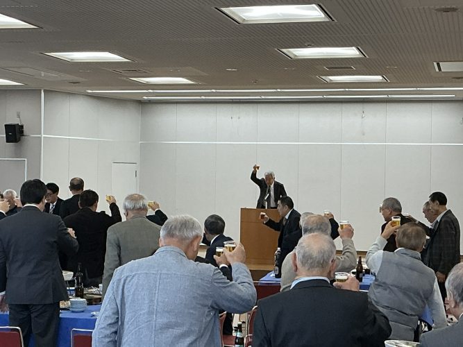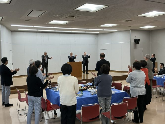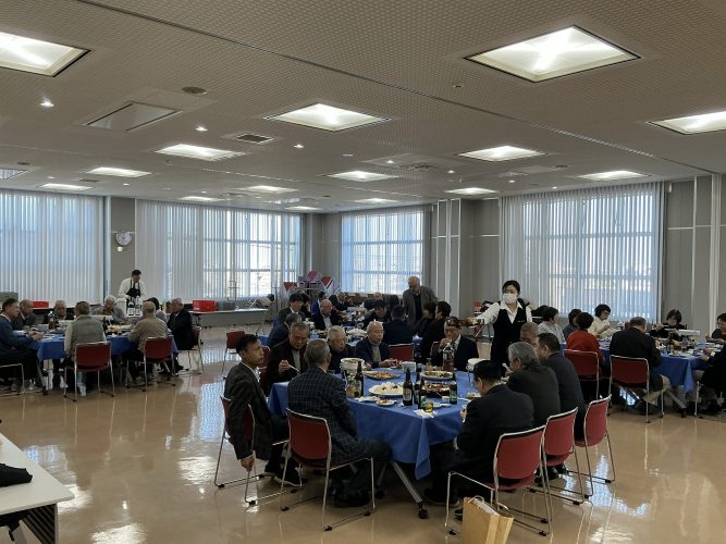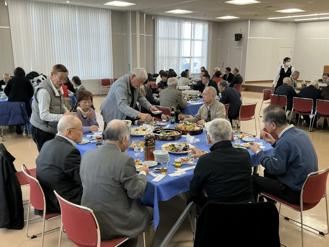会場では、参加者が料理を囲みながら近況や体調について語り合い、和やかな雰囲気の中で会話が弾みました。2時間はあっという間に過ぎ、中締めの後、三本締めをもって散会となりました。